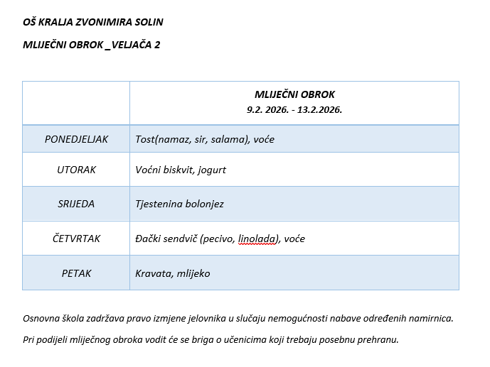 Drugo obrazovno razdoblje započinje u ponedjeljak, 12. siječnja 2026. godine. Smjena „B“ započinje nastavu u 8.00 sati, a smjena „A“ u 14.00 sati. Nastava se odvija prema redovitom rasporedu. Prijevoz učenika putnika organiziran je prema redovitom voznom...