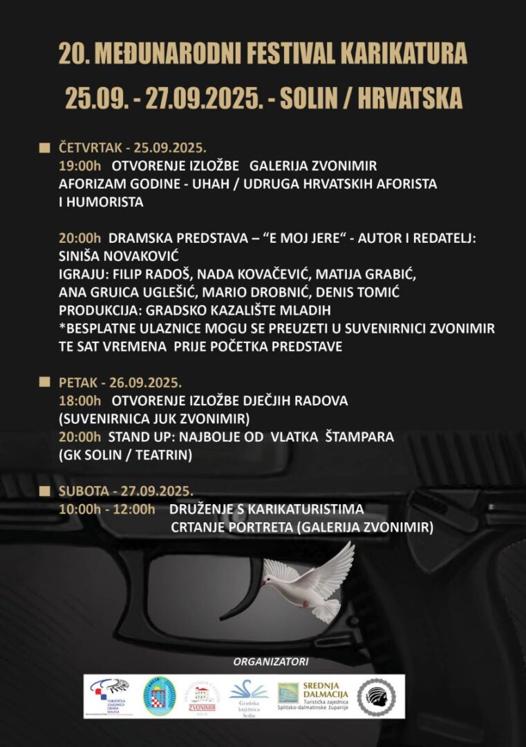 Dodjela nagrada i otvorenje izložbe održat će se u petak, 26. rujna 2025., u 18:00 u Galeriji Zvonimir (suvenirnica JUK Zvonimir, Solin).